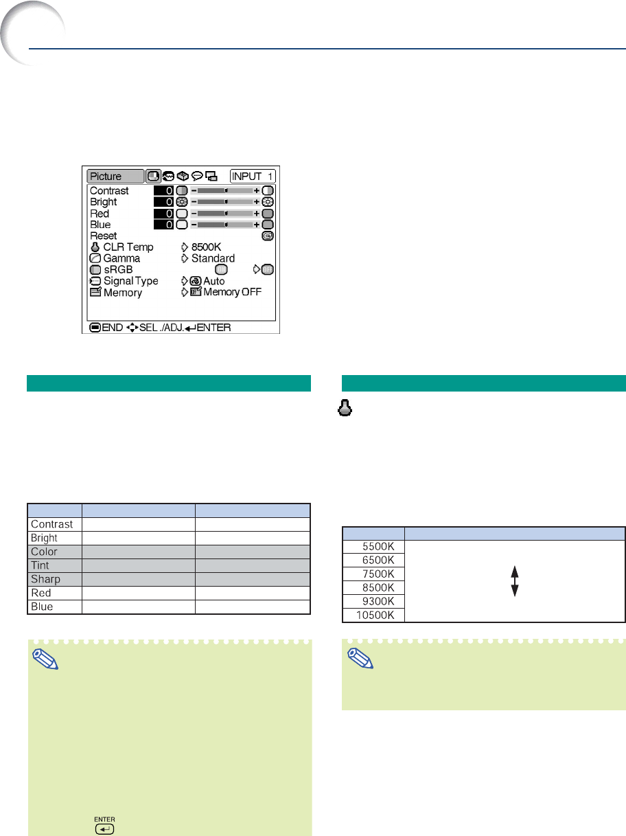 Ýêðàííîå ìåíþ «Picture» (Èçîáðàæåíèå) ïîçâîëÿåò íàñòðàèâàòü èçîáðàæåíèå, ôîðìèðóå-
