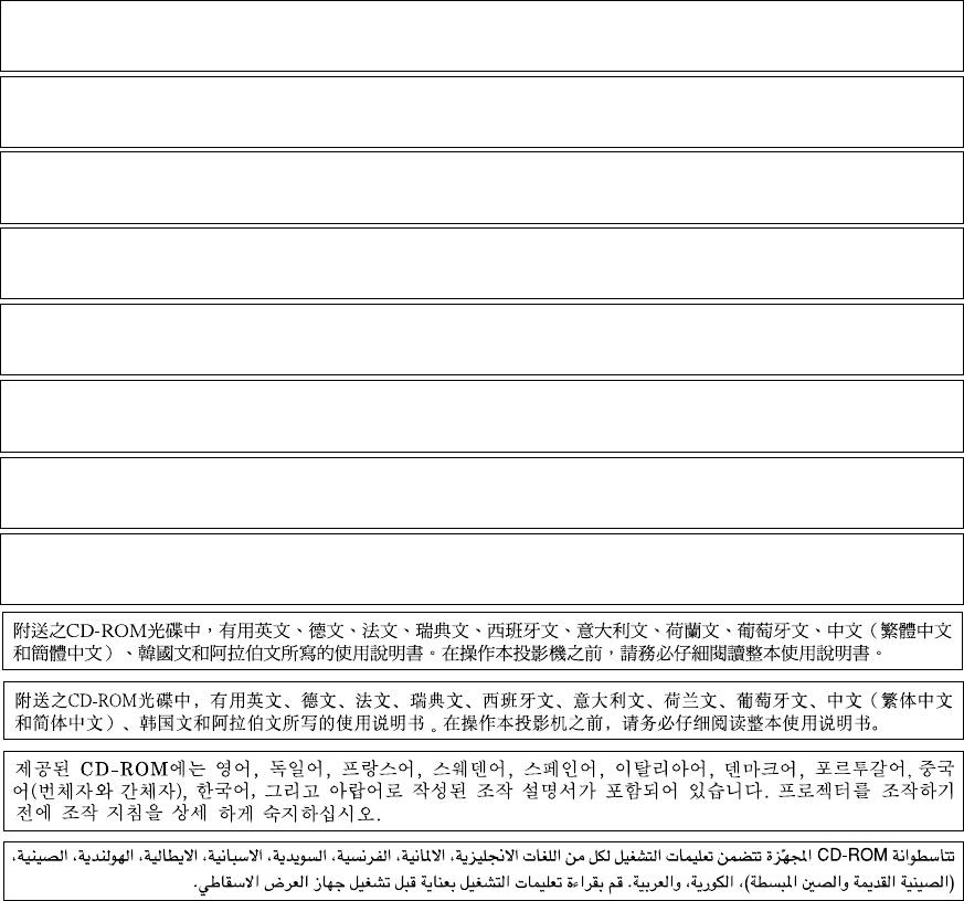 und Arabisch. Bitte lesen Sie die Bedienungsanleitung vor der Verwendung des Projektors sorgfältig durch.