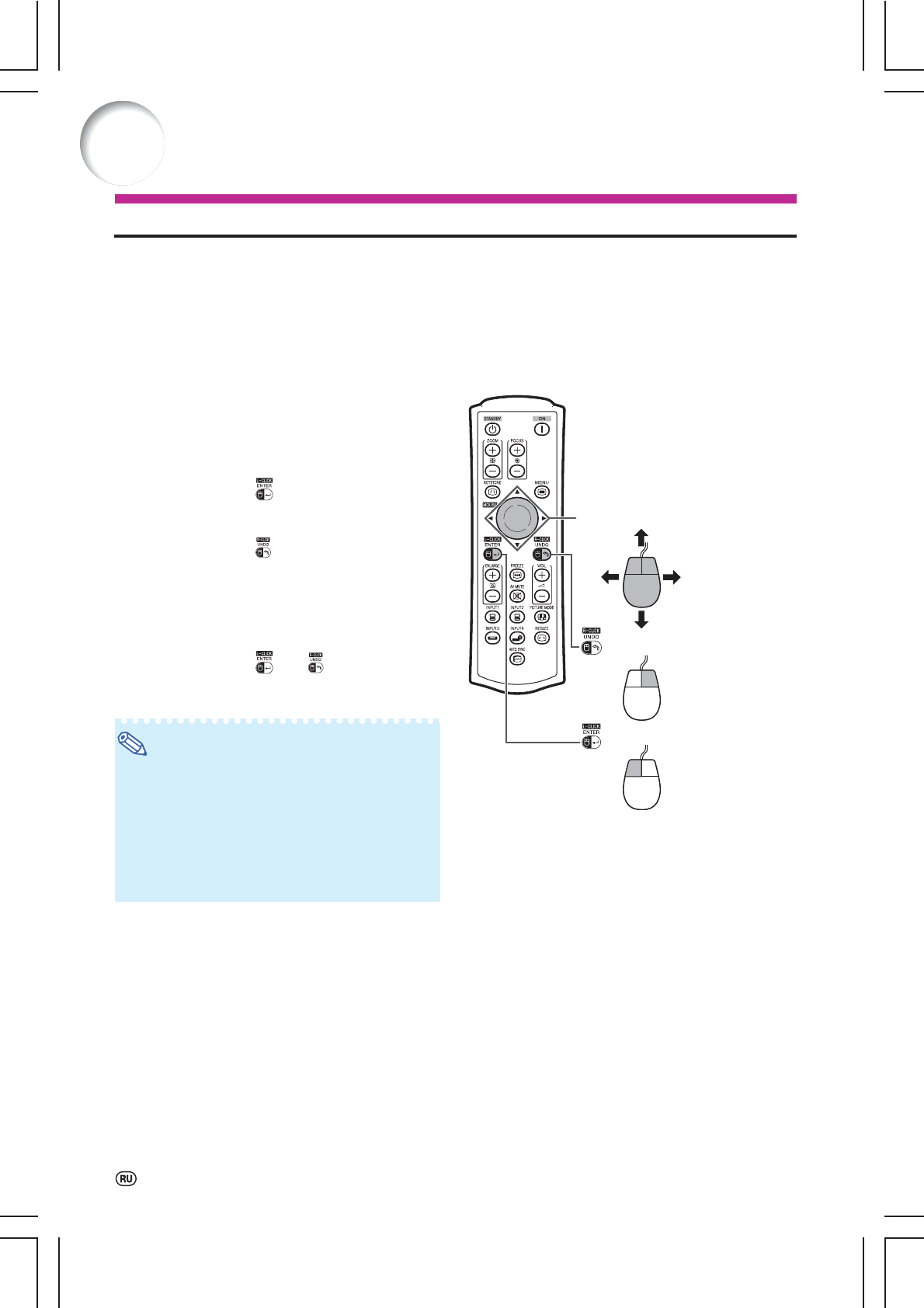 Нажмите кнопку МЫШЬ/кнопки курсора