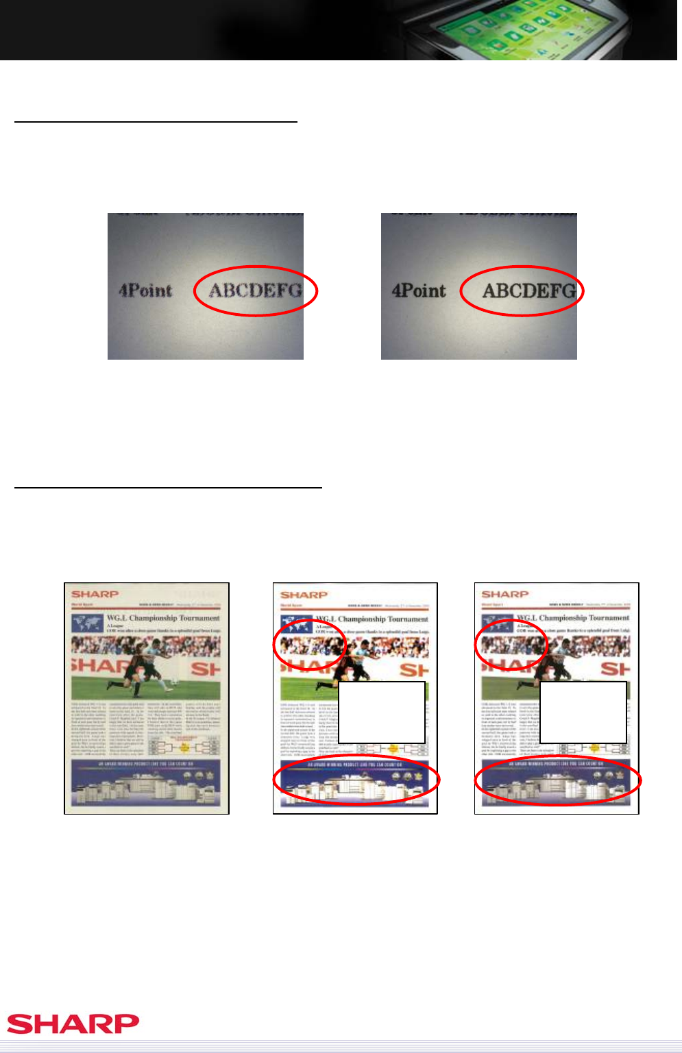 enhanced. Previous models (MX-7001N / MX-6201N) adopted dither method which sometimes caused text