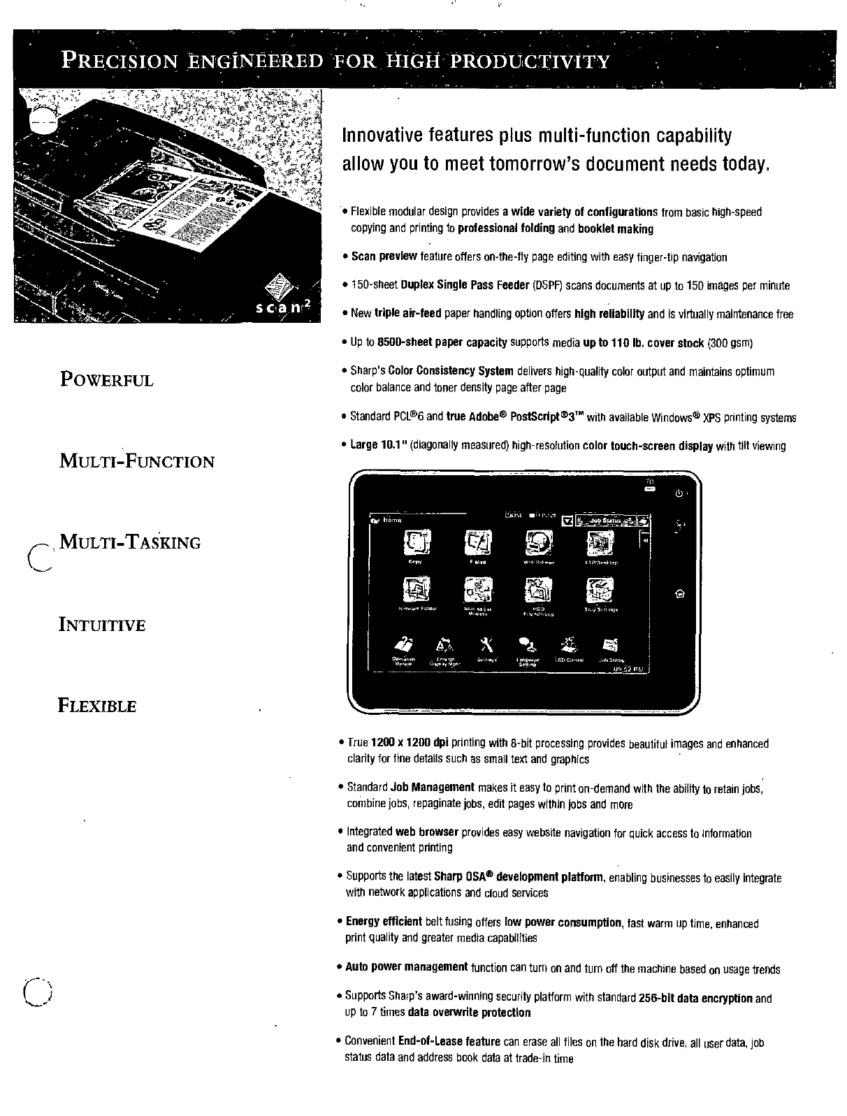 Supports Sharp's award-winning security platform with standard 256-bit data encryption and