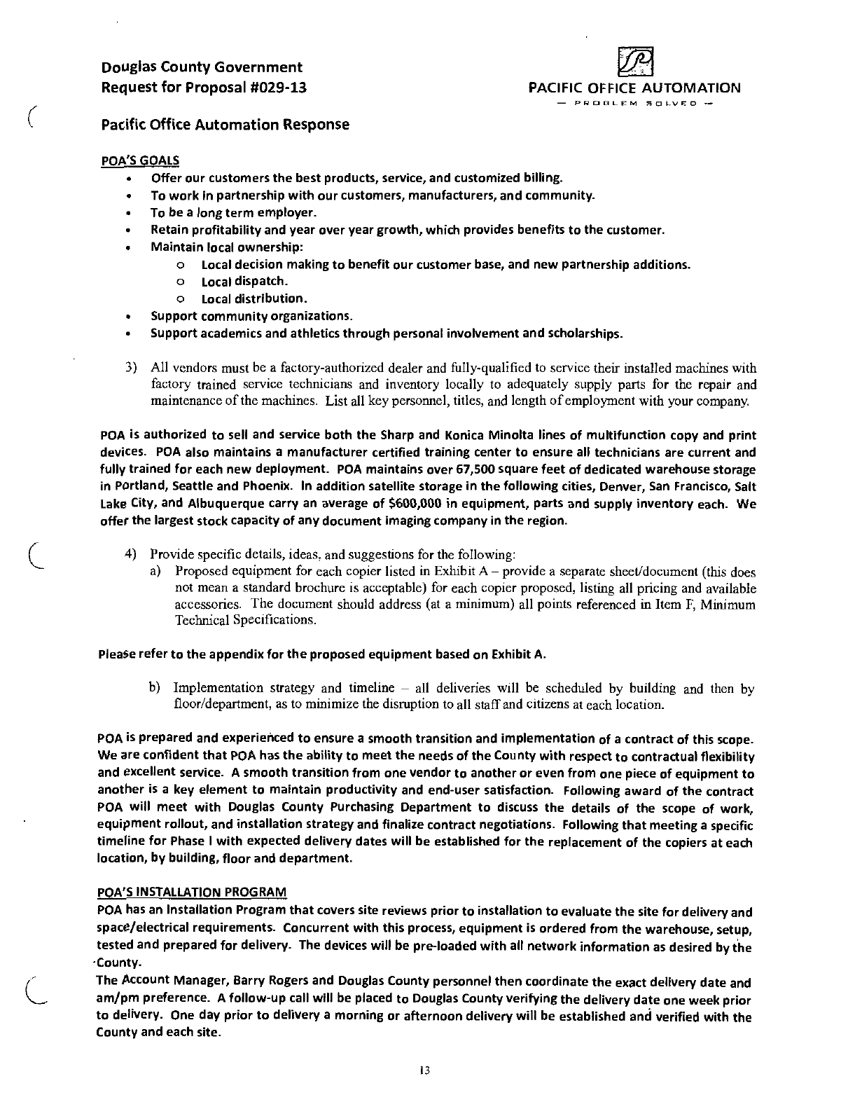 We are confident that POA has the ability to meet the needs of the County with respect to contractual flexibility