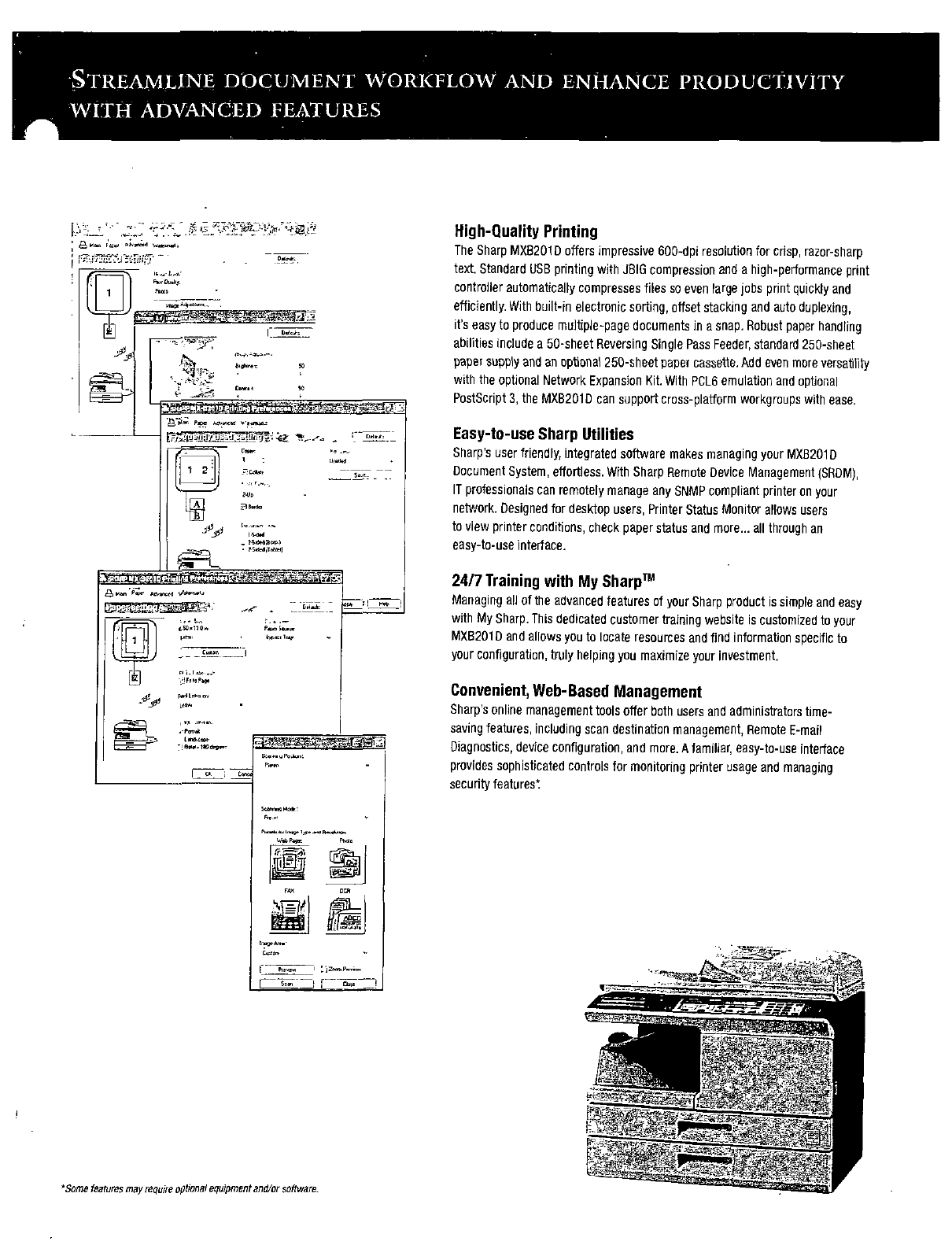 Sharp's user friendly, integrated software makes managing your MXB2O1 0