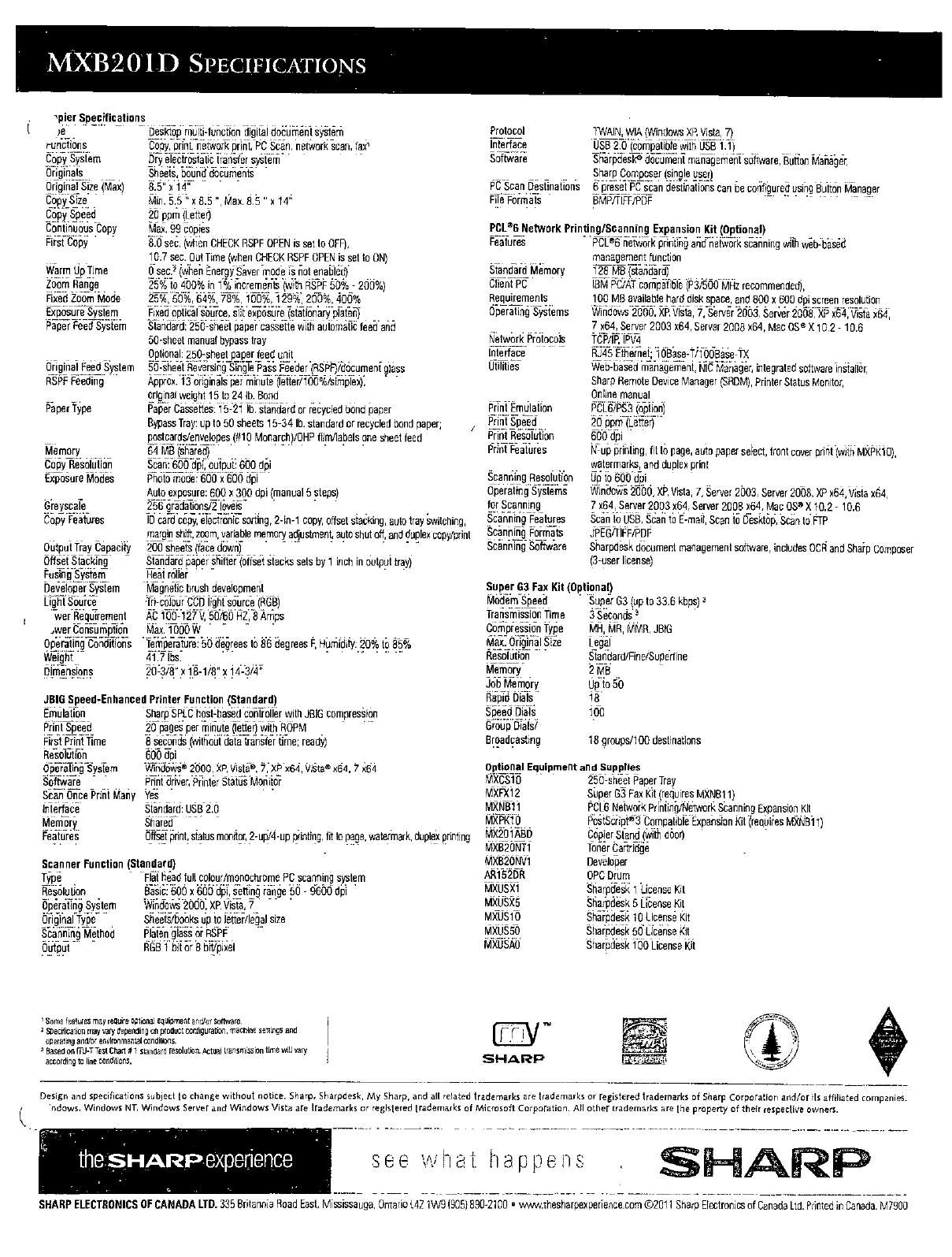 w'.wu.nhesharpexptrience.com ©201 1 Sharp Electronics ot Canada Ltd. Pnnled in Canada. M7900