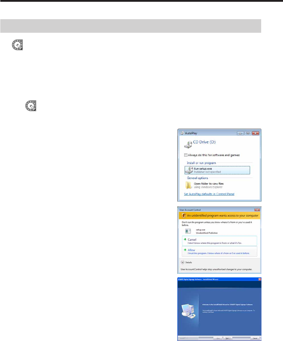 3. Launch the SHARP Digital Signage Software setup program (setup.exe).