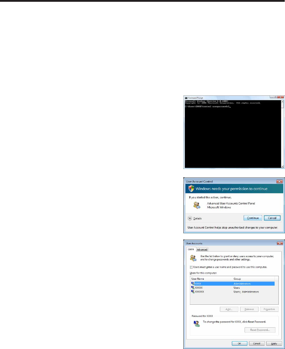If using Windows Vista, use the following procedure to enable auto login.