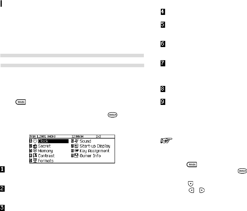 Main Menu. It is also used to set up and configure certain