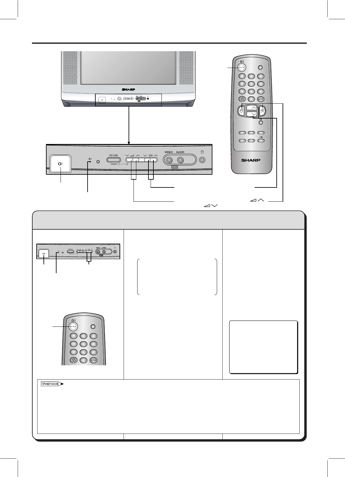 ПИТАНИЕ (Ø) нa телевизоре,