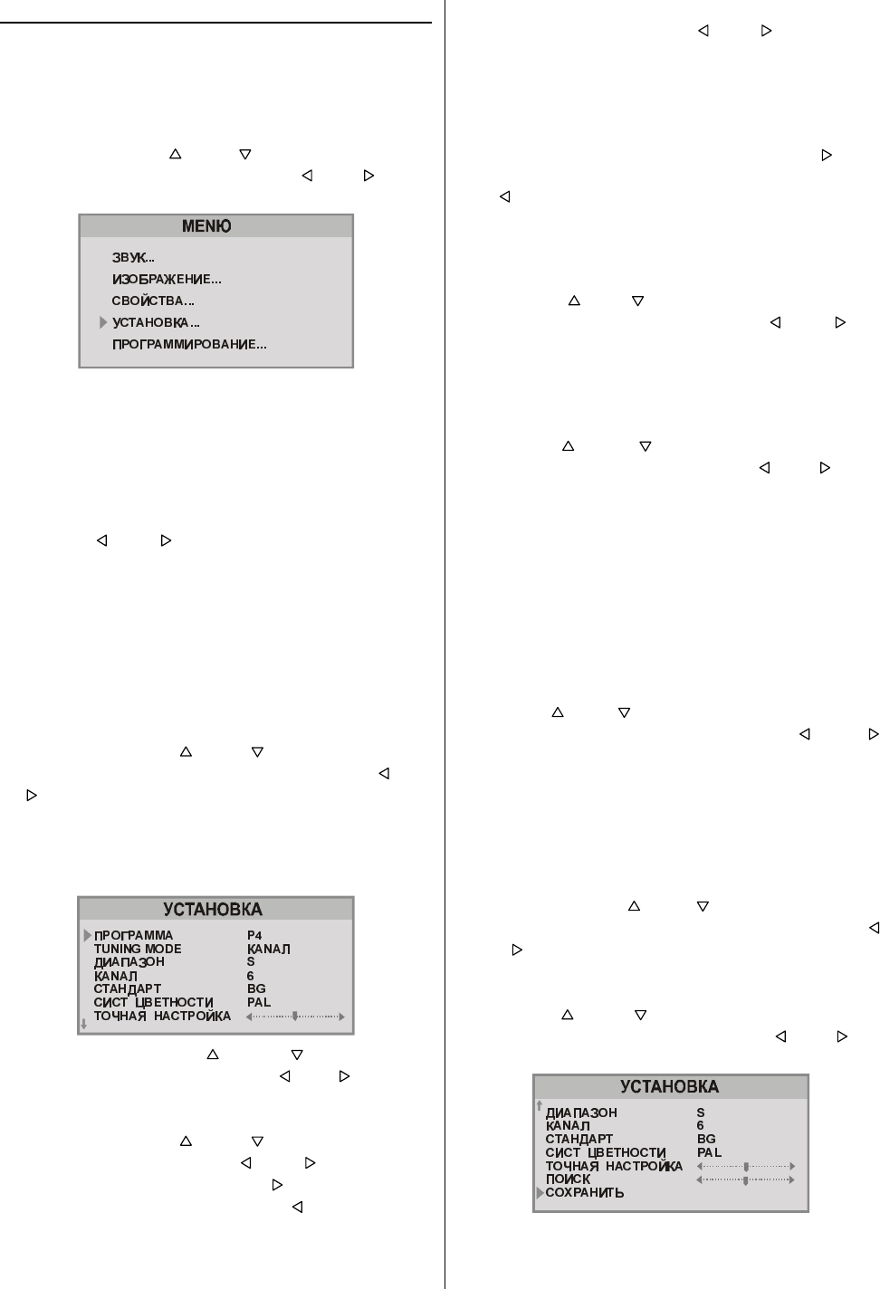 îòîáðàæàåòñÿ íàäïèñü Êàíàë), ìåíþ Óñòàíîâêè