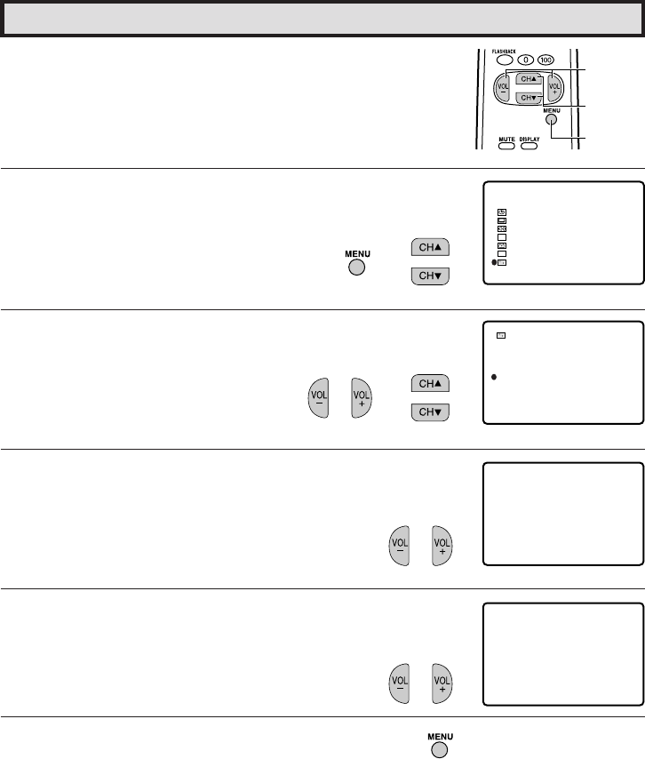 2 Press CH a/s to move the “E” mark to “SET UP”.