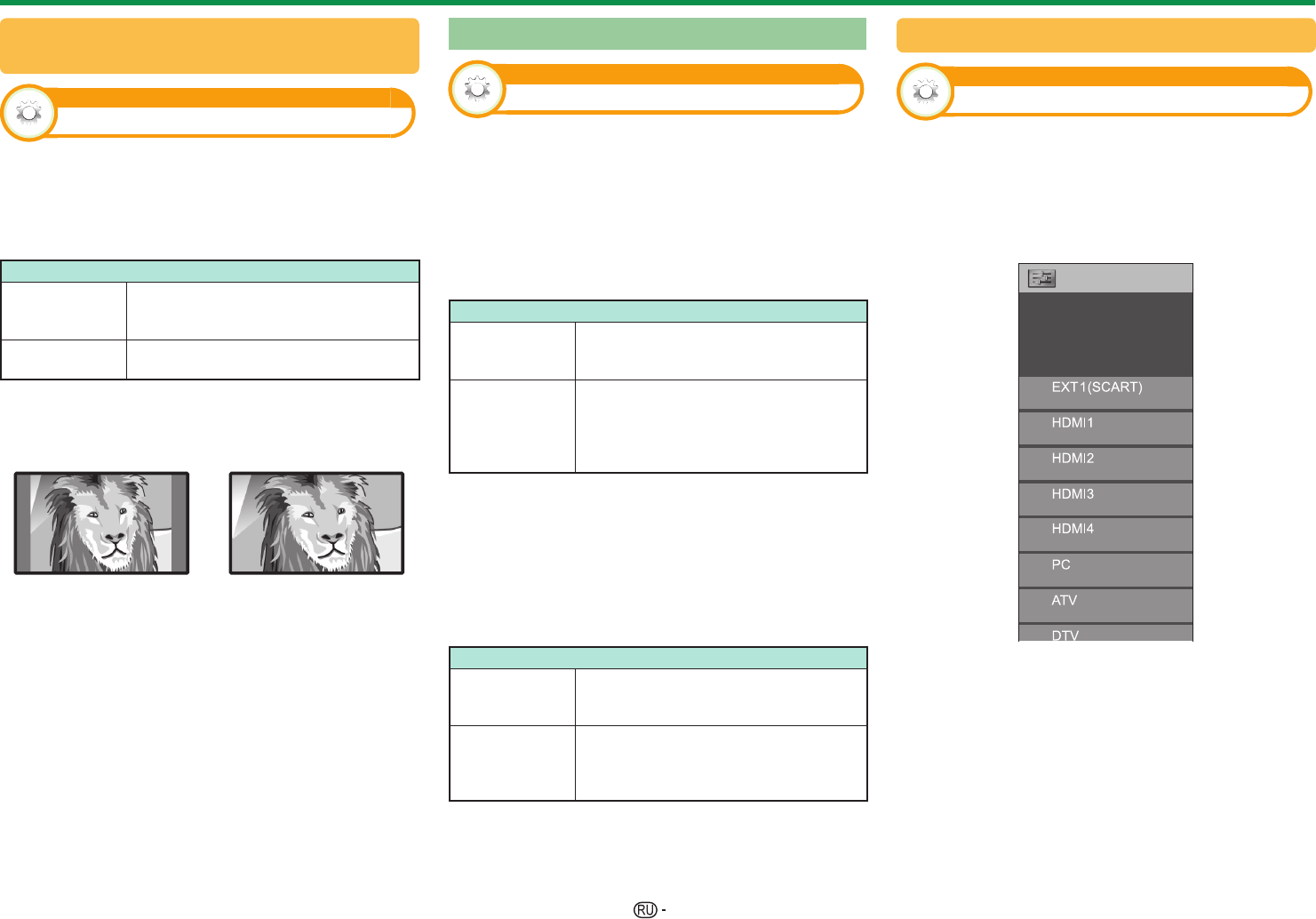 сигнал SCART, HDMI, PC, ATV, DTV или SAT при