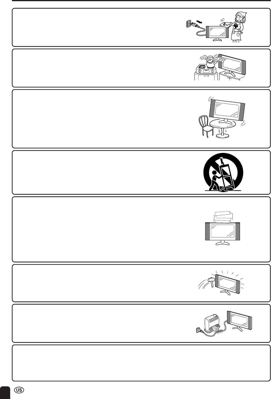 ■ Stand—Do not place the product on an unstable cart, stand,