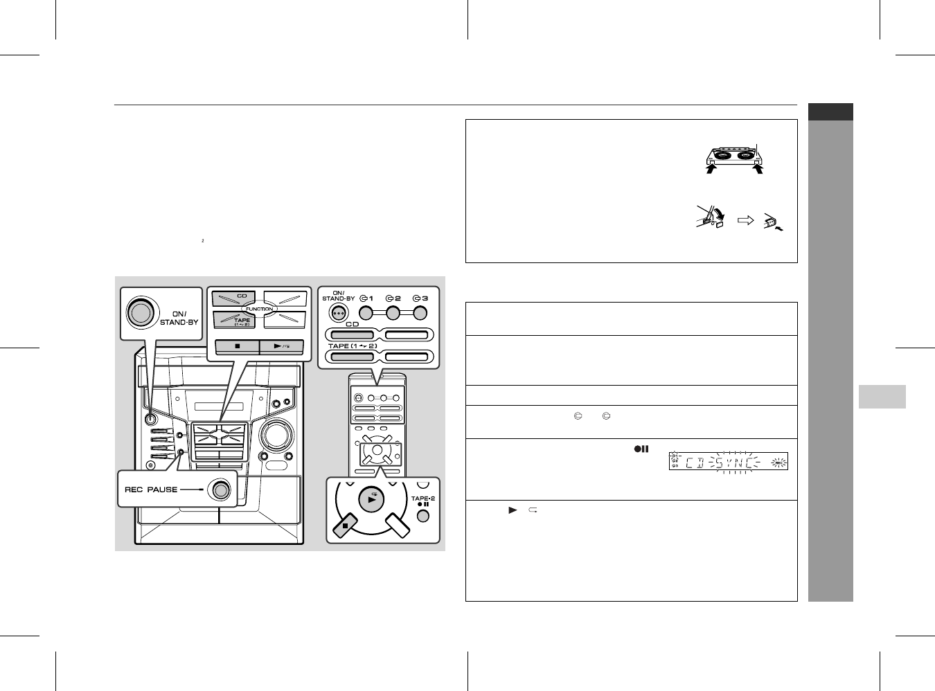 Nur im TAPE 2 Cassettenfach kann Aufnahme gemacht werden.