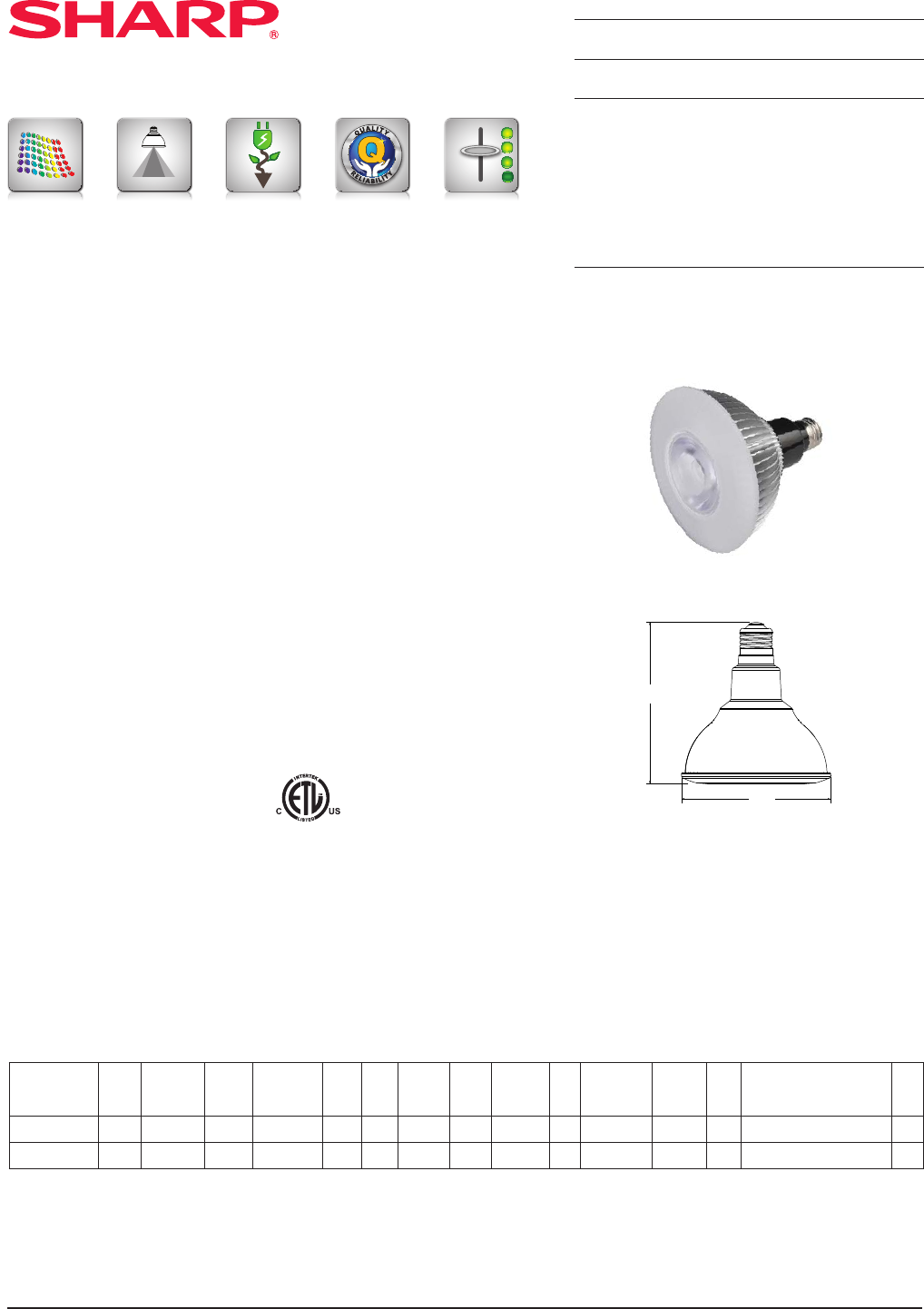 40 90W 20 120 1090 2400 3000 95 50 25000 5.3 PAR38, 40° Beam, High CRI 6
