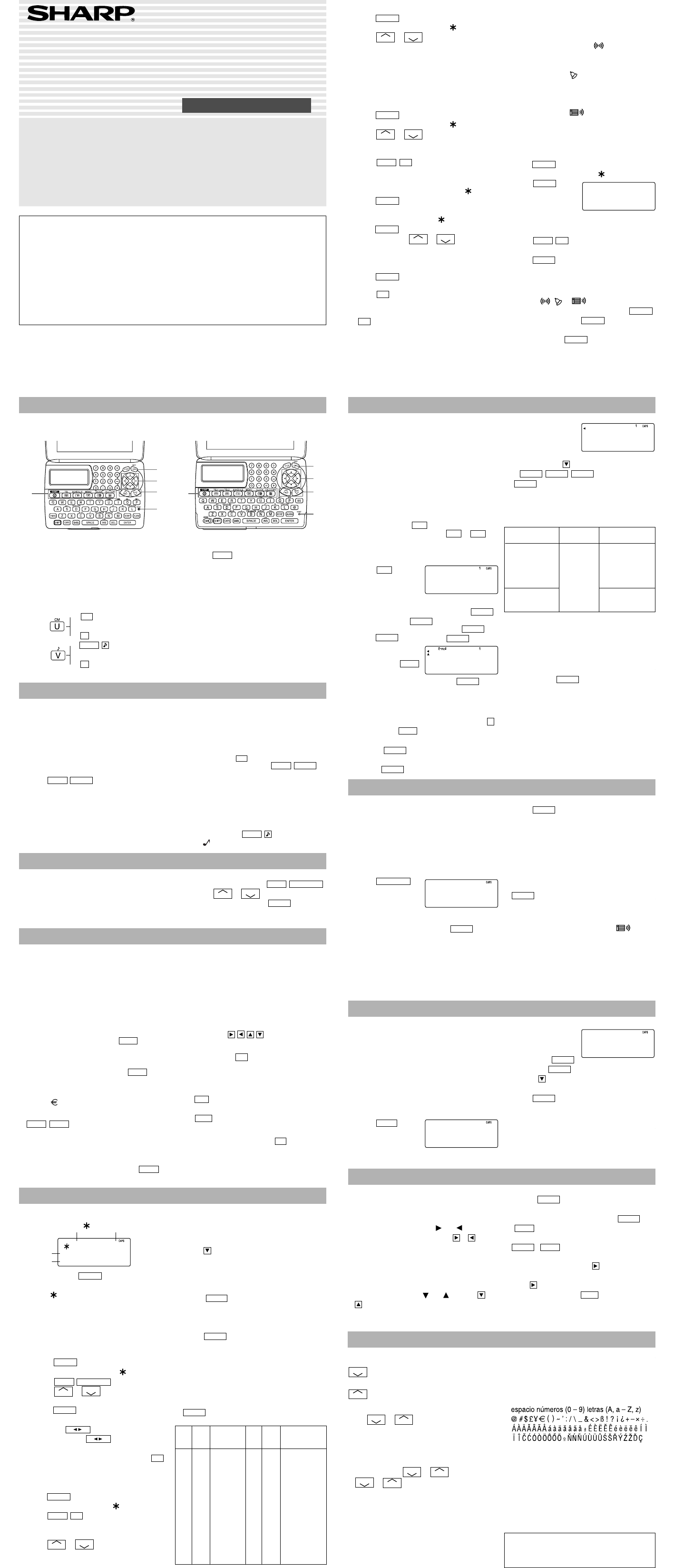 espacio, – y F y P en el modo de teléfono) se