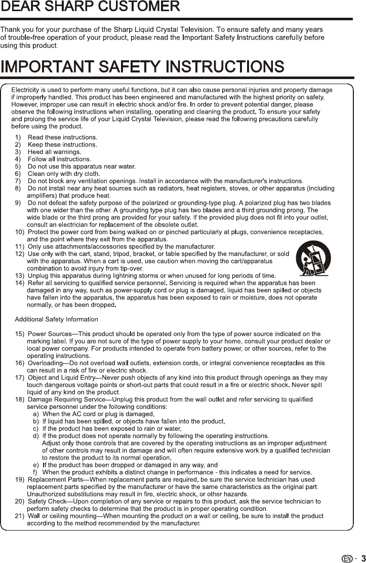 Sharp LC-40LE431U Manuale Utente Pagina 5