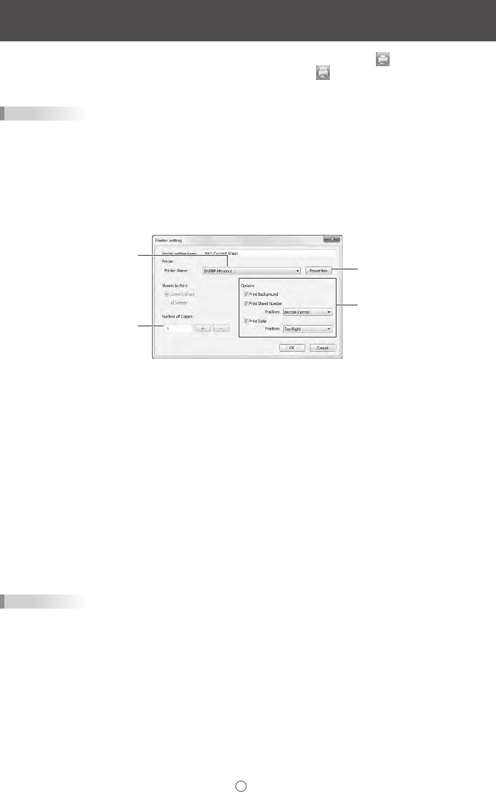 Pour imprimer seulement la feuille afchée actuellement, touchez la touche “Print Current Sheet” .