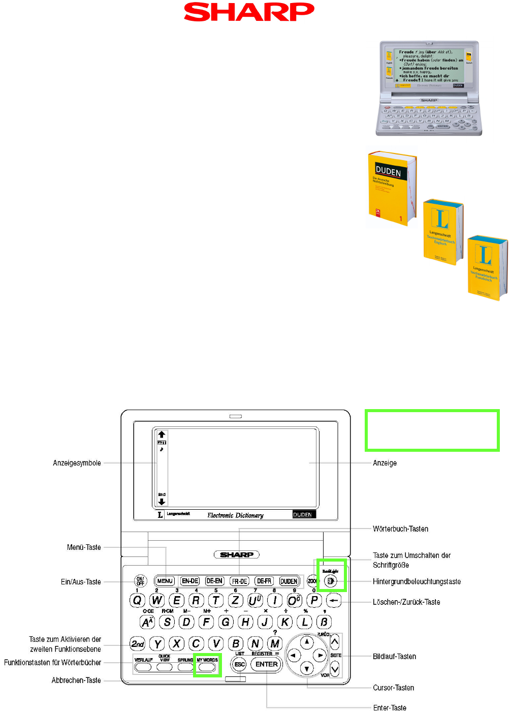Das PW-E410 beinhaltet folgende Wörterbücher:
