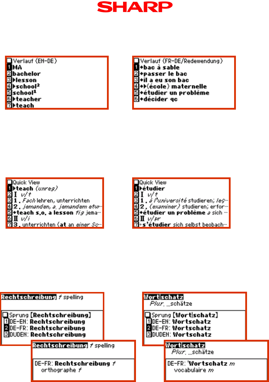 Wörterbuch öffnen und die VERLAUF-Taste drücken.