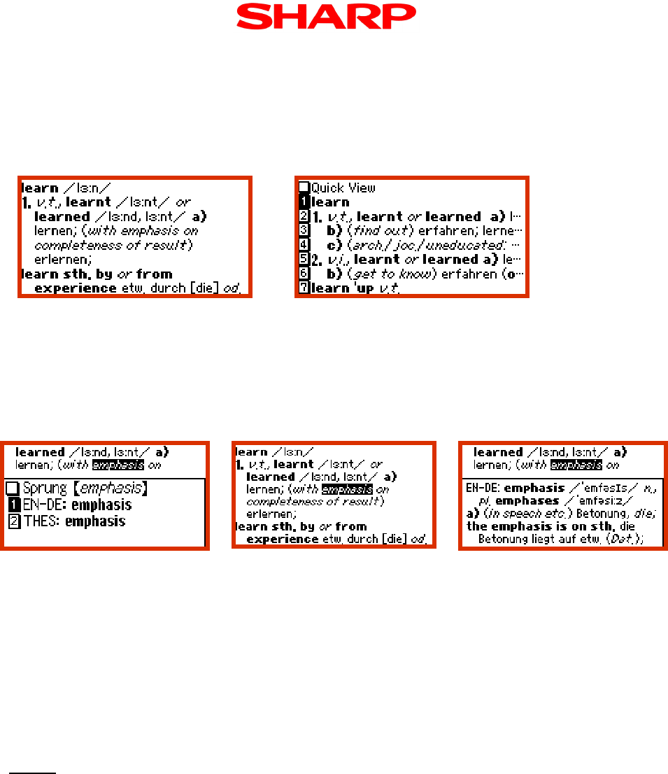 Reihenfolge angezeigt, die den Wörterbuch-Tasten auf dem Gerät entspricht, beginnend mit Englisch-
