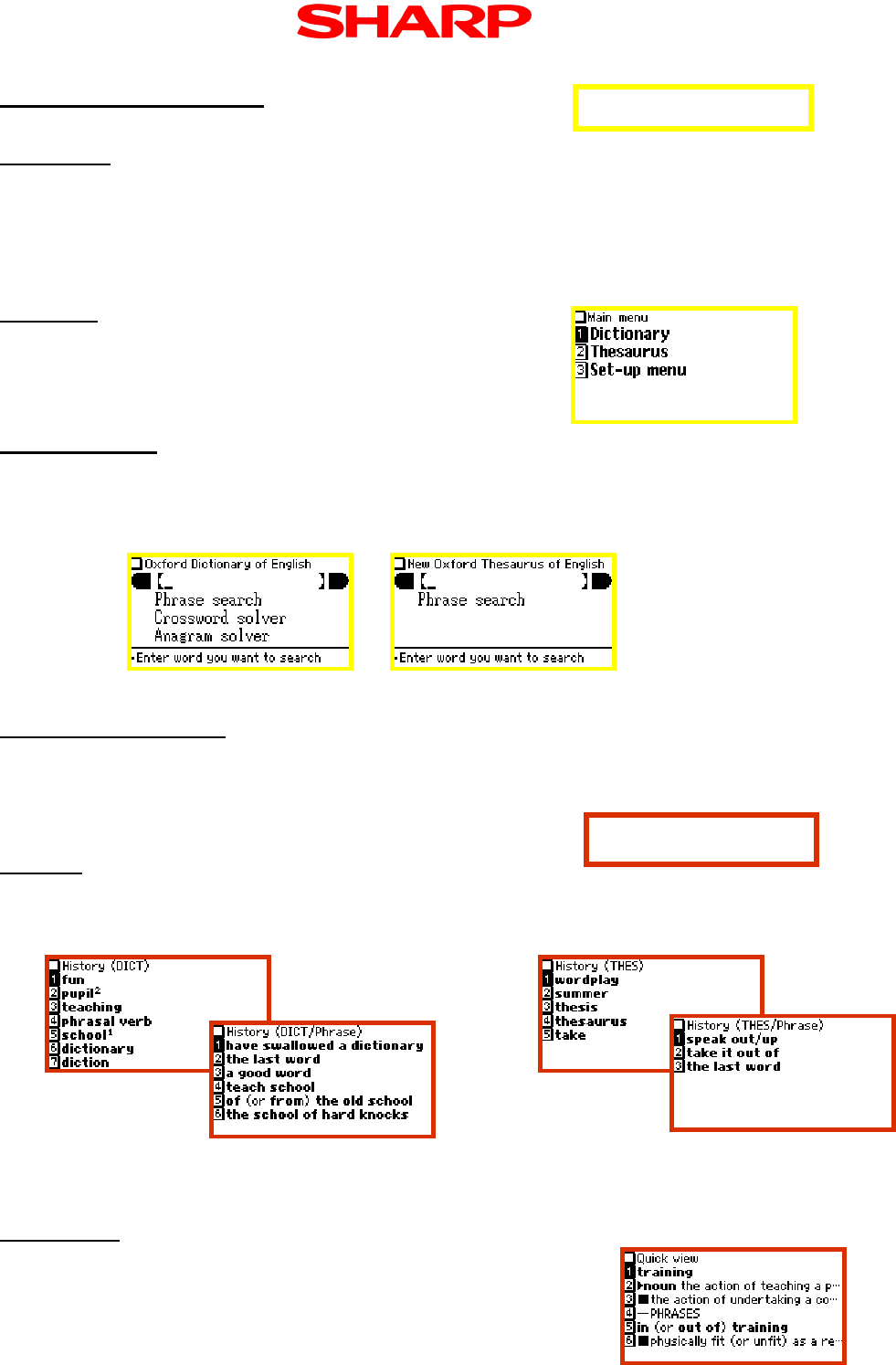 When starting PW-E300 the next time, the screen of the last looked up entry