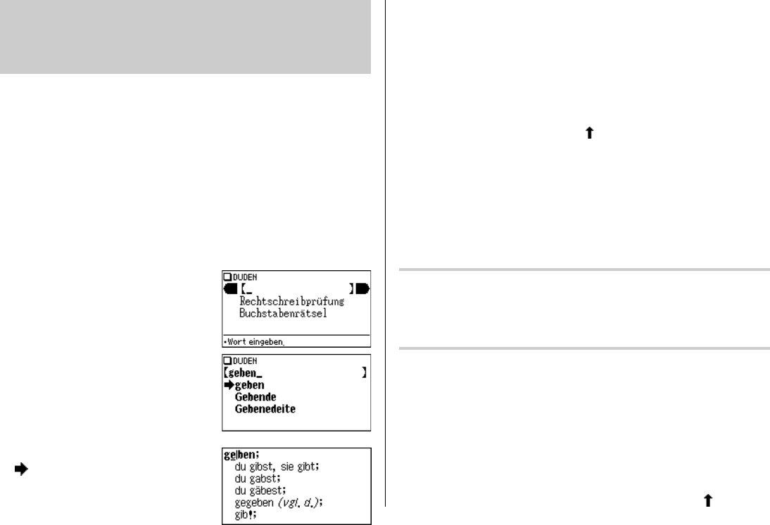 • Um nach einem neuen Wort zu suchen, geben Sie dieses einfach ein oder