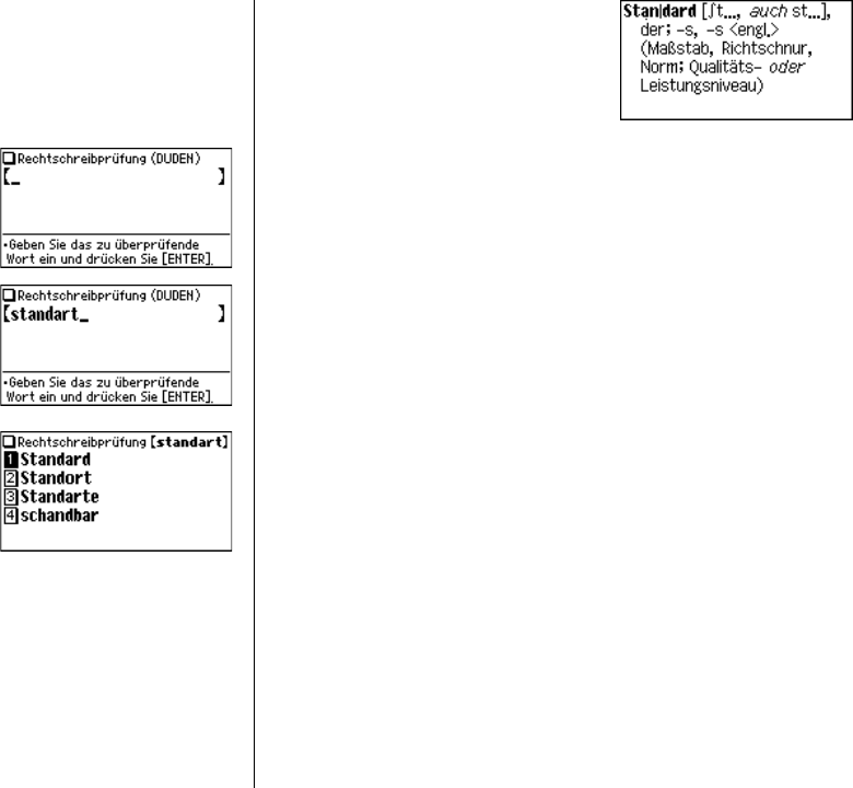 •Wenn die Schreibweise des eingegebenen Worts korrekt ist, wird es in der