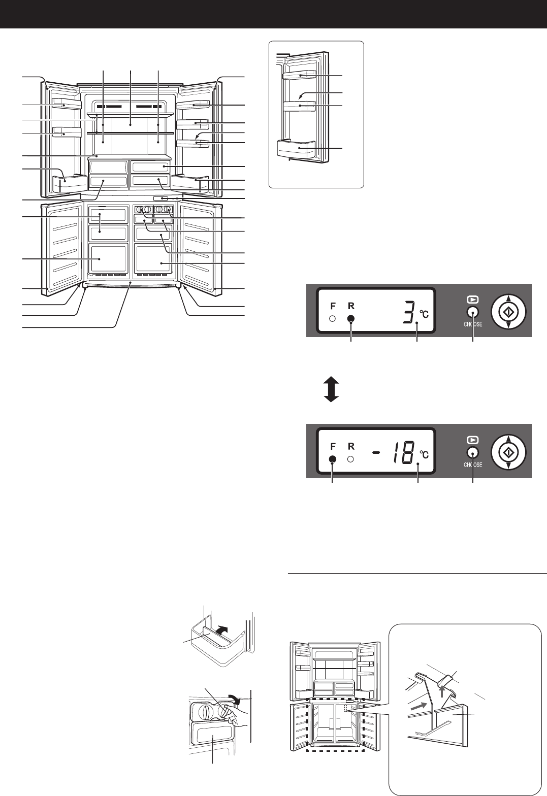 The display of the refrigerator compartment and the •