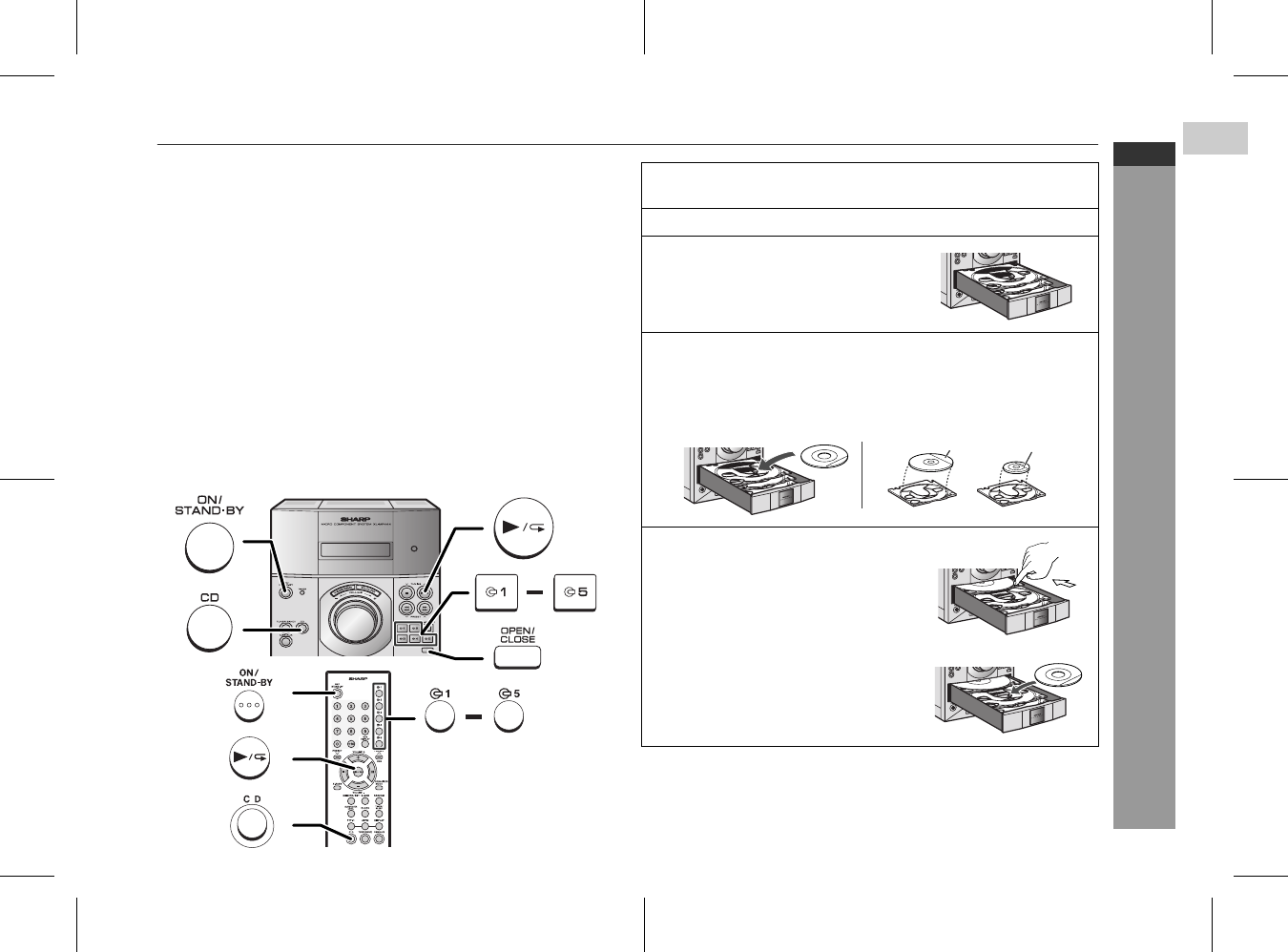 4 Die CD in die Disc-Schublade 1 mit der Etikettenseite nach
