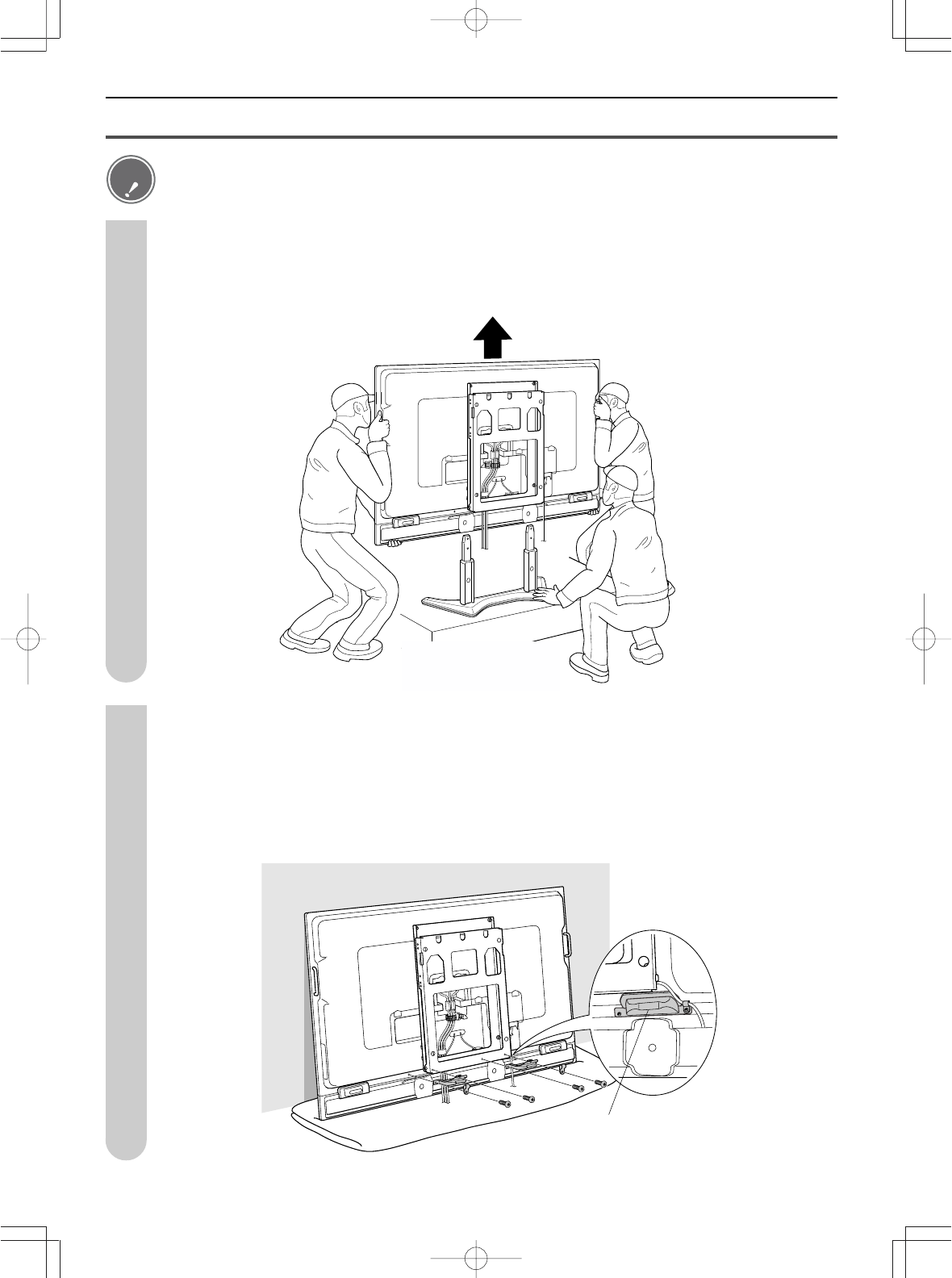 While the stand is being held down, lift up the LCD color TV to remove it from the stand.