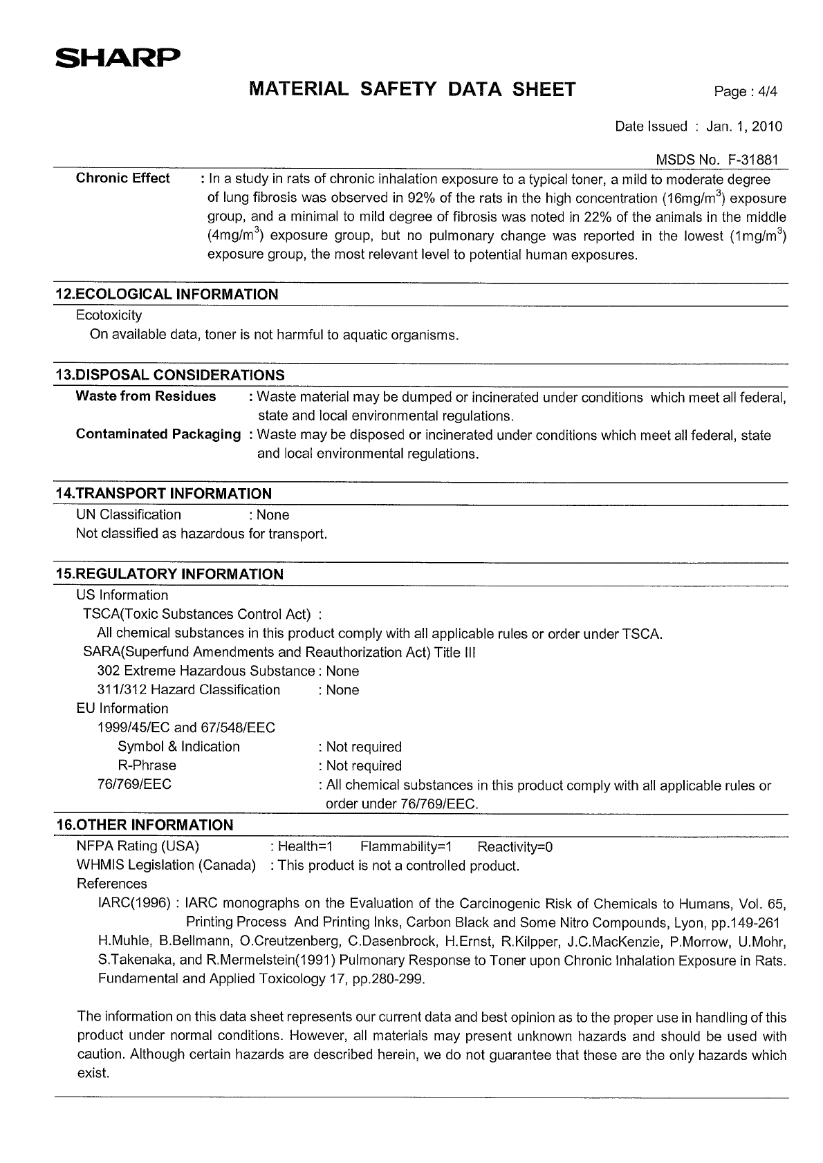 no Sharp MX-4140N Scheda Informativa