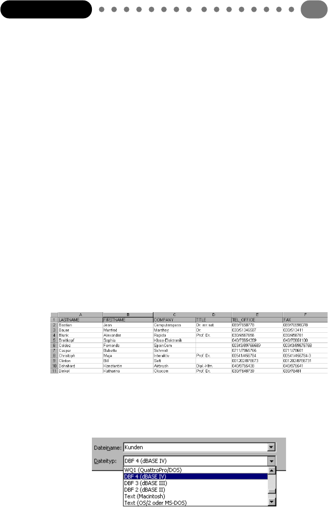 suitable name, e.g. CUSTOMER.DBF, in dBASE format. As a file type, select