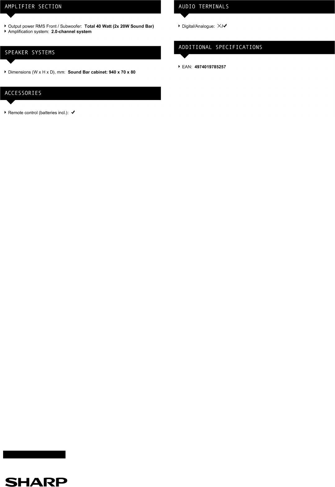 Sharp HT-SB30 Manuale Utente Pagina 2
