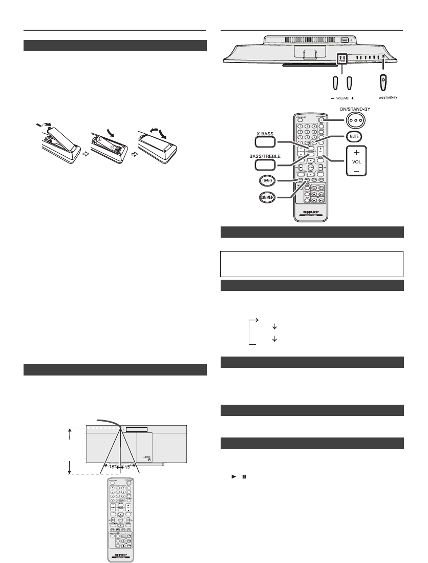 iPod, CD/USB, AUDIO IN, TUNER auf der Fernbedienung: Die
