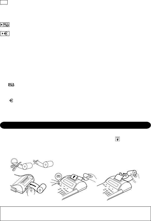 2) Slå på strömmen och mata fram papperet genom att trycka på . (Fig.2)