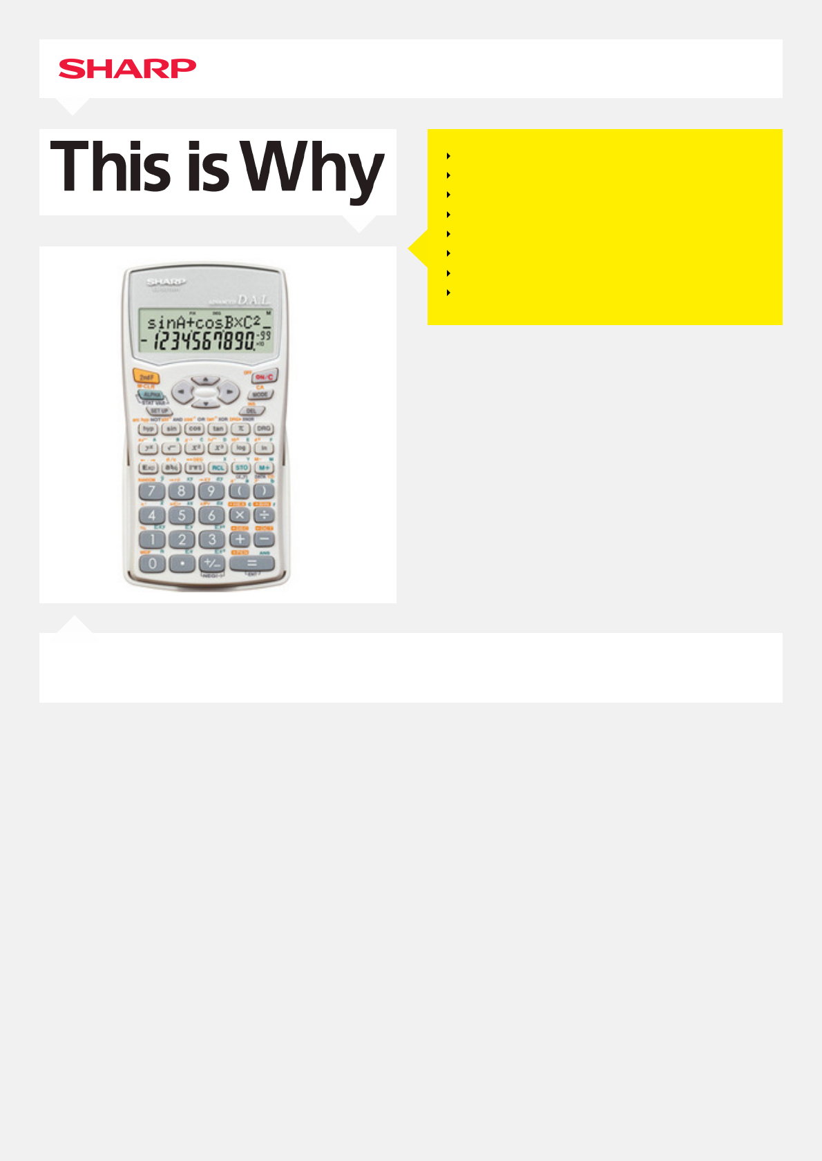 EL-531WBDIRECT ALGEBRAIC LOGIC (D.A.L.)2-LINE DISPLAY272 FUNCTIONSPOWER SOURCE: 1 X BATTERY (LR44)CONSTANT/CHAIN CALCULATIONSMULTI-LINE PLAYBACKSTURDY